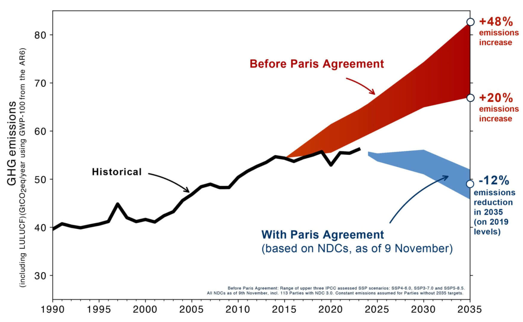 Secondo i nuovi dati diffusi oggi dall’ONU — aggiornamento del Synthesis Report sui Contributi Determinati a livello Nazionale (NDC) — la traiettoria delle emissioni globali sta iniziando a piegarsi verso il basso per la prima volta, grazie agli impegni più recenti assunti dai Paesi. Sulla base dei nuovi NDC, molti dei quali pervenuti nelle ultime settimane, si prevede una riduzione complessiva del 12% delle emissioni entro il 2035 rispetto ai livelli del 2019.