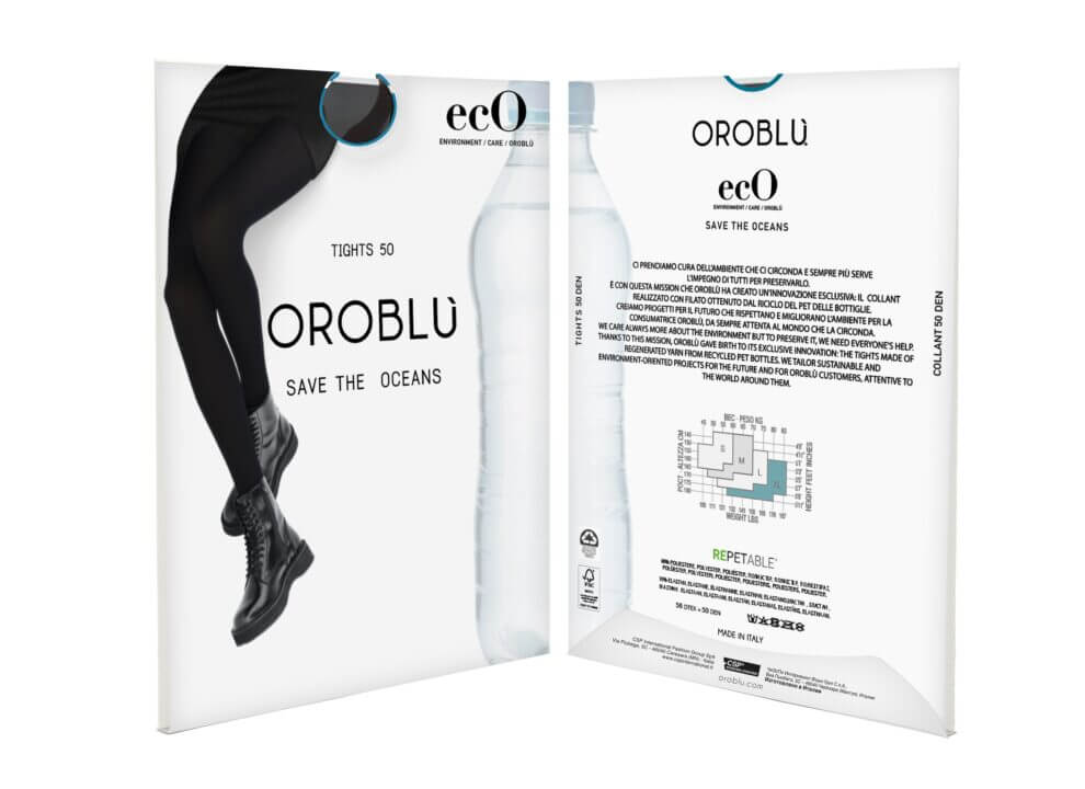 La collaborazione fra le due aziende ha infatti dato vita – come loro stesse spiegano – “a un prodotto tessile di qualità, alla moda e sostenibile grazie a un limitato impatto sull’ambiente”: il risultato prende il nome di “Oroblù save the oceans” ed è il primo collant italiano realizzato con filati ottenuti dal riciclo del Pet delle bottiglie e come ulteriore contributo alle prospettive del sustainable fashion.