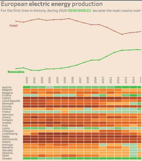 Buone notizie – in ottica di transizione energetica – per la prima volta nella storia europea le risorse rinnovabili hanno scalzato i combustibili fossili come primaria fonte di elettricità (fonte Il Sole 24 Ore).