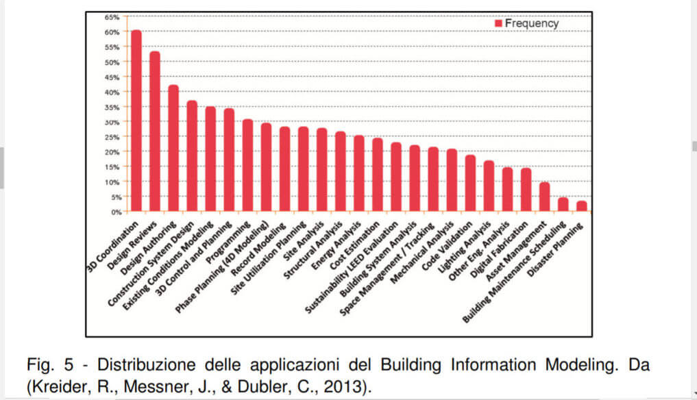 Distribuzione delle applicazioni del BIM (Kreider, R.Messner, J. & Dubler, C., 2013)